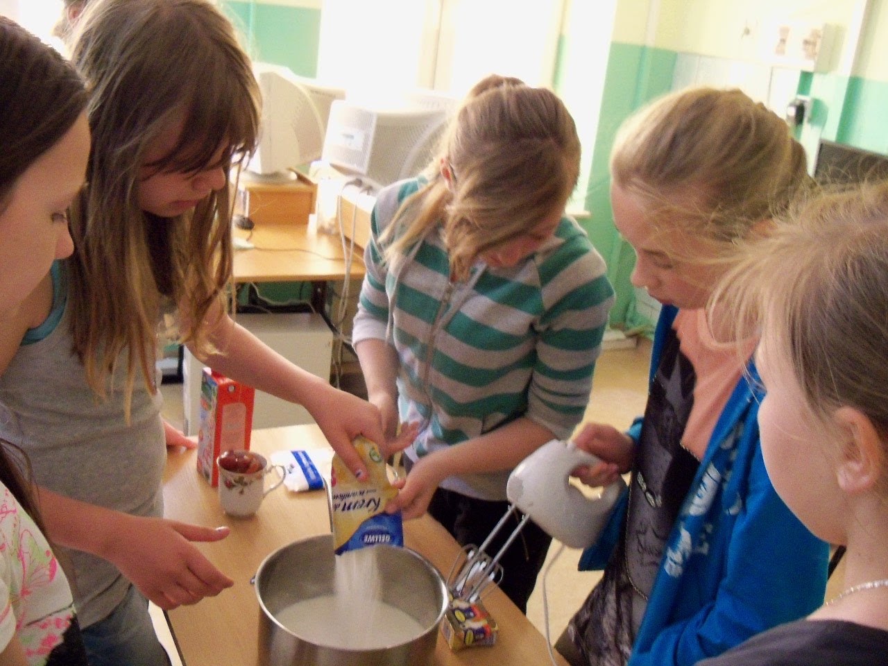 Nasz tort nie był ani z papieru, ani z gliny, ani też z plasteliny. Piekliśmy wspaniały tort, który był zwieńczeniem projektu edukacyjnego z multipodręcznika do matematyki Gdańskiego Wydawnictwa Oświatowego. Z matematyką na faktach pracujemy już od ponad roku. Do tej pory "bawiliśmy się" kaloriami, tworzyliśmy papier, oglądaliśmy z każdej strony bochenek chleba. Dziś 19 maja 2015 r. przyszedł czas na zmagania z tortem. Projekty prowadziła Helena Gąsior. Do wspólnego świętowania dołączyła się także pani wychowawczyni. Zobaczcie zdjęcia jeśli jesteście ciekawi.